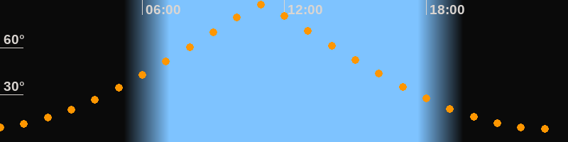 | Höchster Stand (Kulmination) | 11:02 Uhr (h = 87,1°) |