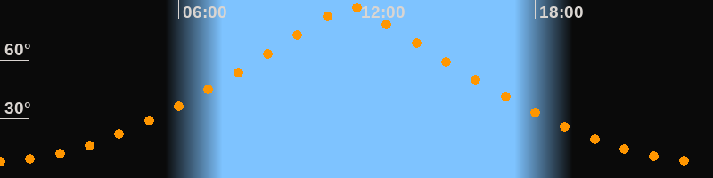 | Höchster Stand (Kulmination) | 11:47 Uhr (h = 87,1°) |