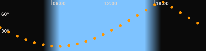 | Höchster Stand (Kulmination) | 18:45 Uhr (h = 87,1°) |