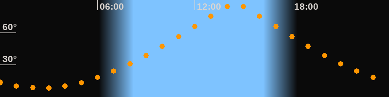 | Höchster Stand (Kulmination) | 14:30 Uhr (h = 87,1°) |
