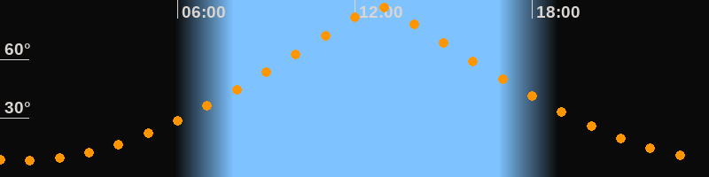 | Höchster Stand (Kulmination) | 12:47 Uhr (h = 87,1°) |