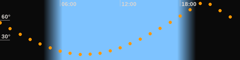 | Höchster Stand (Kulmination) | 20:25 Uhr (h = 87,1°) |