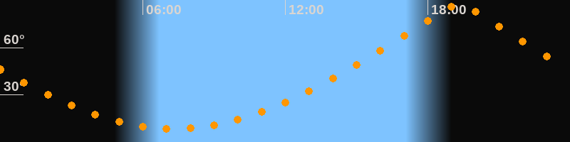 | Höchster Stand (Kulmination) | 19:19 Uhr (h = 87,1°) |