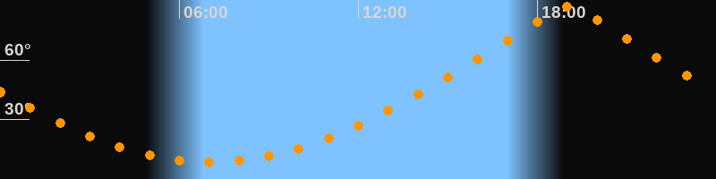 | Höchster Stand (Kulmination) | 19:03 Uhr (h = 87,1°) |