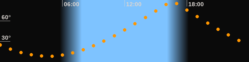 | Höchster Stand (Kulmination) | 16:33 Uhr (h = 87,1°) |