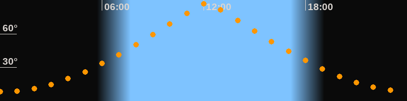 | Höchster Stand (Kulmination) | 12:10 Uhr (h = 87,1°) |