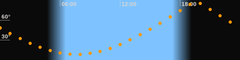 | Höchster Stand (Kulmination) | 19:35 Uhr (h = 87,1°) |