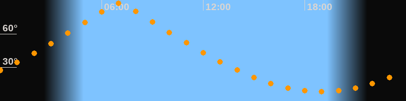 | Höchster Stand (Kulmination) | 07:01 Uhr (h = 87,1°) |