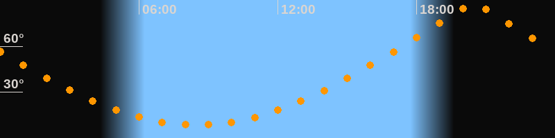 | Höchster Stand (Kulmination) | 20:28 Uhr (h = 87,1°) |