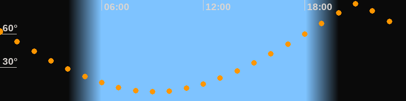 | Höchster Stand (Kulmination) | 21:06 Uhr (h = 87,1°) |