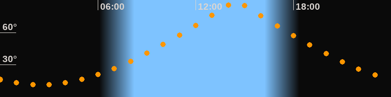 | Höchster Stand (Kulmination) | 14:27 Uhr (h = 89,9°) |