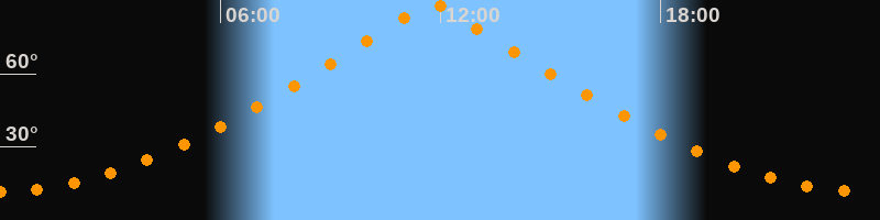 | Höchster Stand (Kulmination) | 11:46 Uhr (h = 89,9°) |