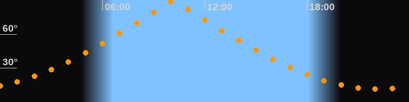 | Höchster Stand (Kulmination) | 10:08 Uhr (h = 89,9°) |