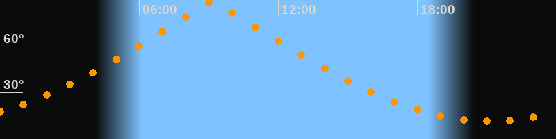 | Höchster Stand (Kulmination) | 09:09 Uhr (h = 89,9°) |