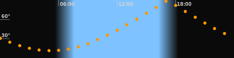 | Höchster Stand (Kulmination) | 17:09 Uhr (h = 89,9°) |