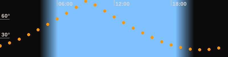 | Höchster Stand (Kulmination) | 09:10 Uhr (h = 89,9°) |