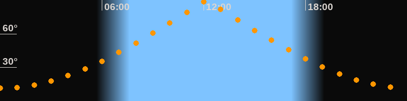 | Höchster Stand (Kulmination) | 12:08 Uhr (h = 89,9°) |