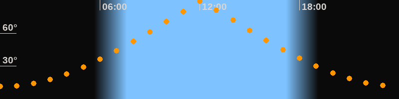 | Höchster Stand (Kulmination) | 12:04 Uhr (h = 89,9°) |