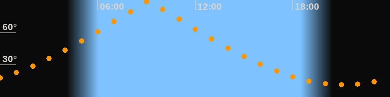 | Höchster Stand (Kulmination) | 09:07 Uhr (h = 89,9°) |