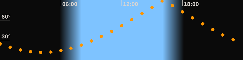 | Höchster Stand (Kulmination) | 16:08 Uhr (h = 89,9°) |