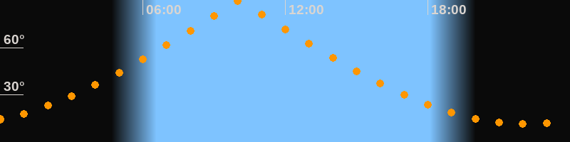 | Höchster Stand (Kulmination) | 10:03 Uhr (h = 89,9°) |