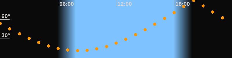 | Höchster Stand (Kulmination) | 20:02 Uhr (h = 89,9°) |