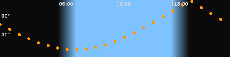 | Höchster Stand (Kulmination) | 19:47 Uhr (h = 89,9°) |