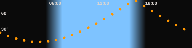 | Höchster Stand (Kulmination) | 16:49 Uhr (h = 89,9°) |