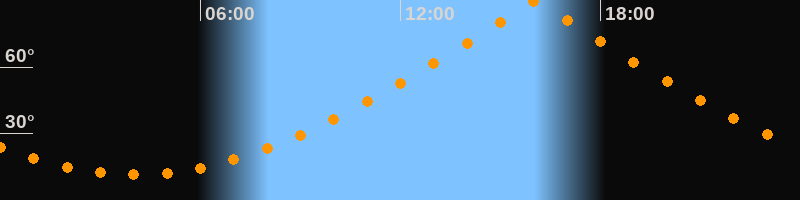 | Höchster Stand (Kulmination) | 16:02 Uhr (h = 89,9°) |