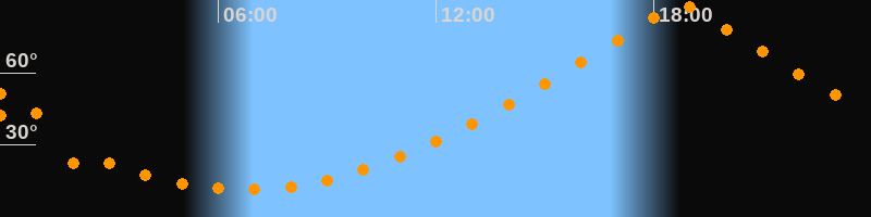 | Höchster Stand (Kulmination) | 18:44 Uhr (h = 89,9°) |