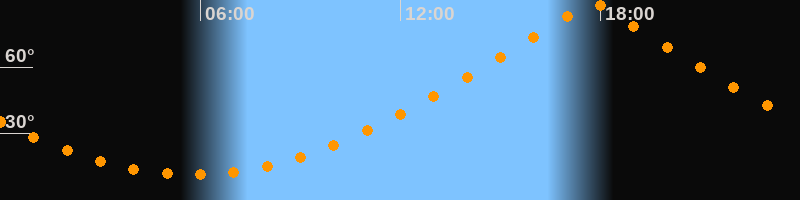 | Höchster Stand (Kulmination) | 17:45 Uhr (h = 89,9°) |