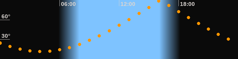 | Höchster Stand (Kulmination) | 16:09 Uhr (h = 89,9°) |