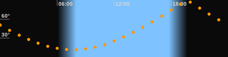 | Höchster Stand (Kulmination) | 19:40 Uhr (h = 89,9°) |