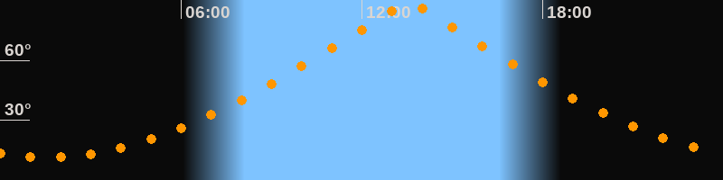 | Höchster Stand (Kulmination) | 13:33 Uhr (h = 89,9°) |