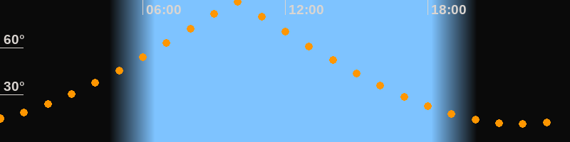 | Höchster Stand (Kulmination) | 09:53 Uhr (h = 89,9°) |