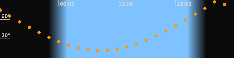 | Höchster Stand (Kulmination) | 22:18 Uhr (h = 89,9°) |