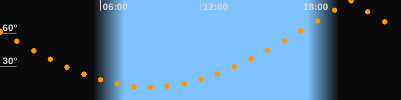 | Höchster Stand (Kulmination) | 20:55 Uhr (h = 89,9°) |