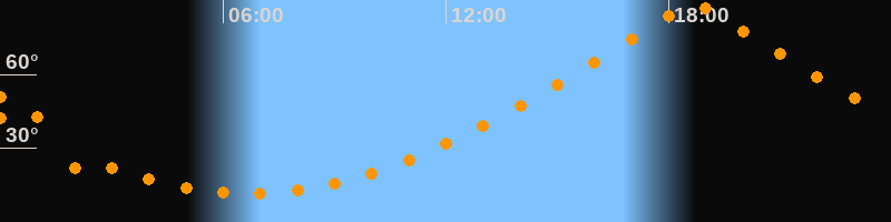 | Höchster Stand (Kulmination) | 18:41 Uhr (h = 89,9°) |