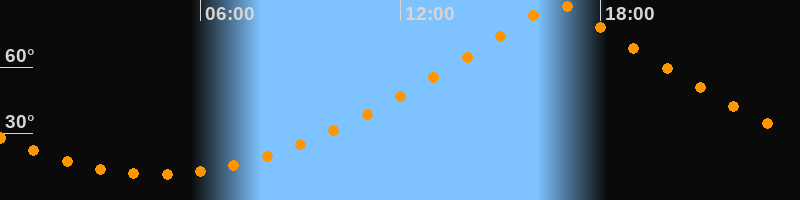 | Höchster Stand (Kulmination) | 16:43 Uhr (h = 89,9°) |
