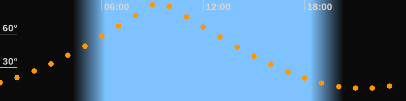 | Höchster Stand (Kulmination) | 09:26 Uhr (h = 89,9°) |