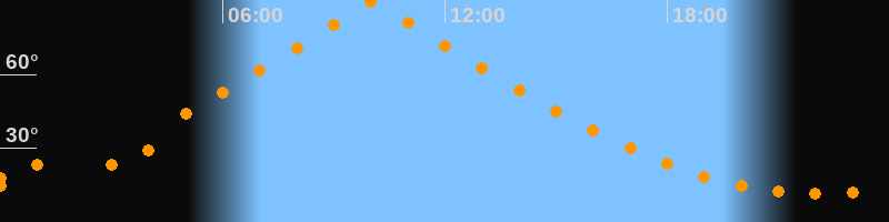 | Höchster Stand (Kulmination) | 10:03 Uhr (h = 89,9°) |