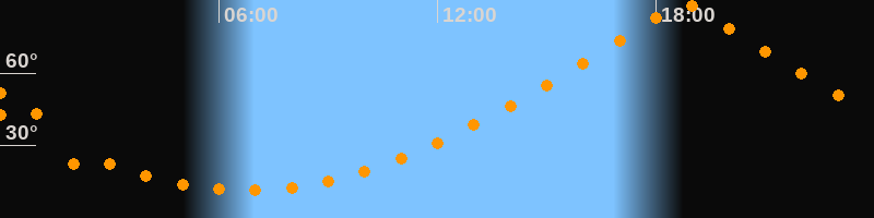 | Höchster Stand (Kulmination) | 18:46 Uhr (h = 89,9°) |
