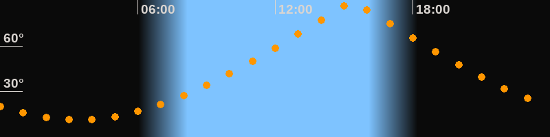 | Höchster Stand (Kulmination) | 15:21 Uhr (h = 89,9°) |
