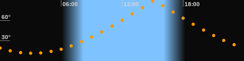 | Höchster Stand (Kulmination) | 15:09 Uhr (h = 89,9°) |