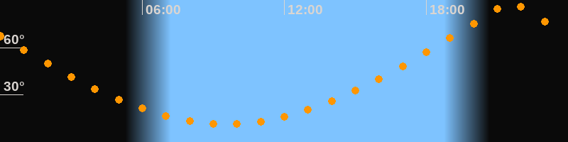 | Höchster Stand (Kulmination) | 21:33 Uhr (h = 89,9°) |
