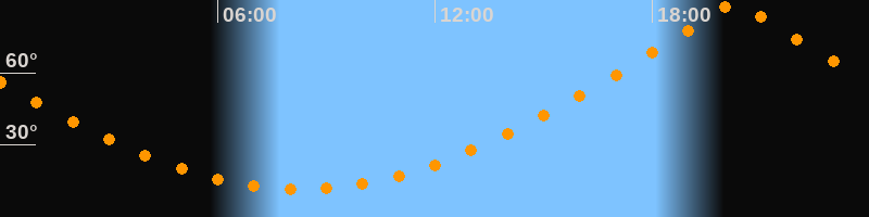 | Höchster Stand (Kulmination) | 20:18 Uhr (h = 89,9°) |