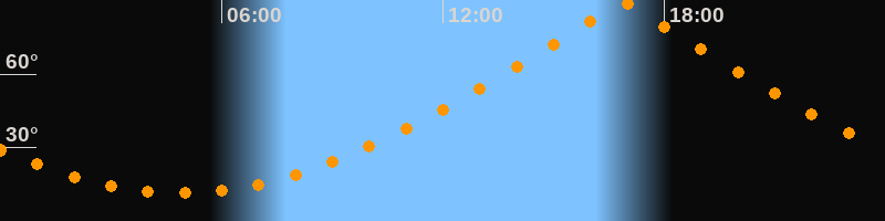 | Höchster Stand (Kulmination) | 16:52 Uhr (h = 89,9°) |