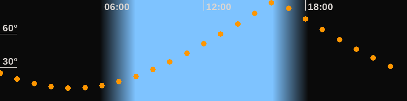 | Höchster Stand (Kulmination) | 16:13 Uhr (h = 89,9°) |