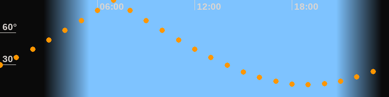 | Höchster Stand (Kulmination) | 07:00 Uhr (h = 89,9°) |