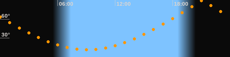 | Höchster Stand (Kulmination) | 21:06 Uhr (h = 89,9°) |